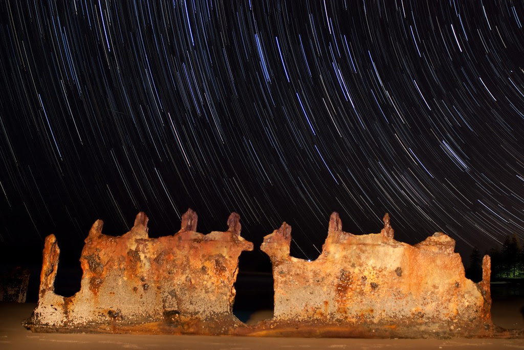 Pete and I were heading up the coast to take meet up with some of the crew from Australian Photography and decided to leave a bit earlier ( 2:30am) and get some star trails over the shipwreck on Dickies beach.